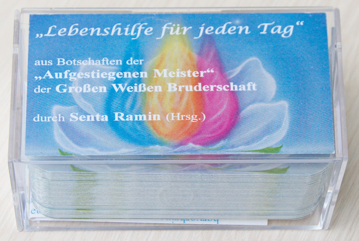 Eine Sammlung mit 72 Kärtchen von Zitaten der Meister als Lebenshilfe, um sich jeden Tag mit der Energie dieser Worte zu verbinden.